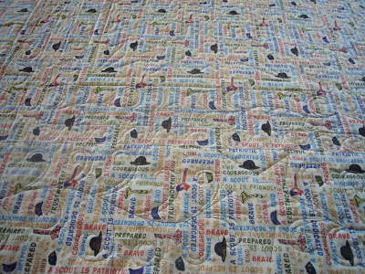 One of my latest finishes is a birthday present for a client’s son. It’s a beautiful tribute to his days as a boy scout and his time in the military. This quilt probably gave me the most trouble on trying to figure out what the quilting should be. There were a few things that became mental hurdles…#1 it’s for a man. I probably shouldn’t quilt a bunch of pretty feathers on it. You know I wanted to though! Lol! #2 all the borders, including a very large top and bottom border. Well, this is what I came up with.