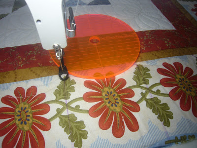 I used my curved crosshatching ruler to quilt the first scallop. Then I used my one of my circle templates to quilt the next scallop to create the banner.