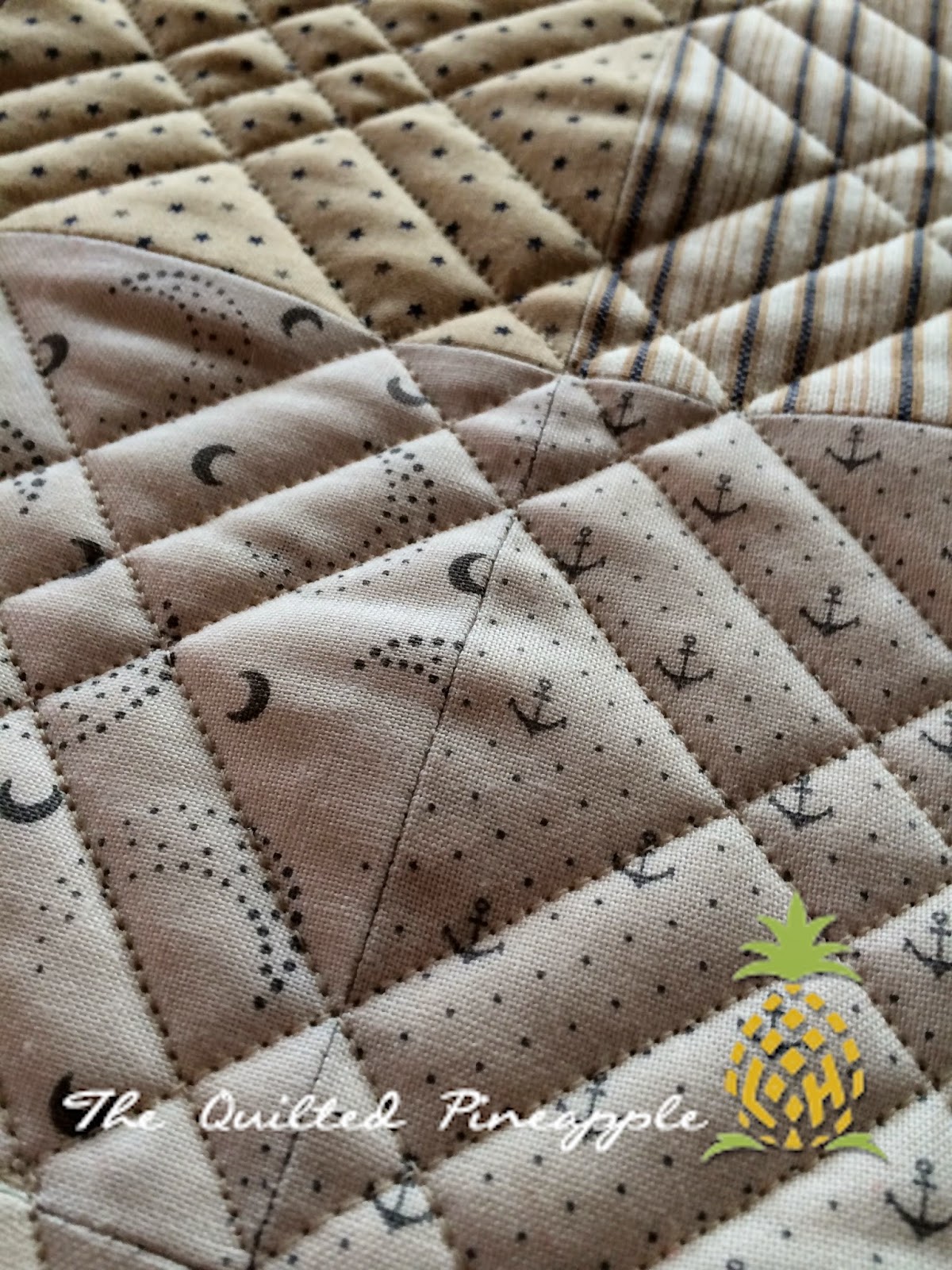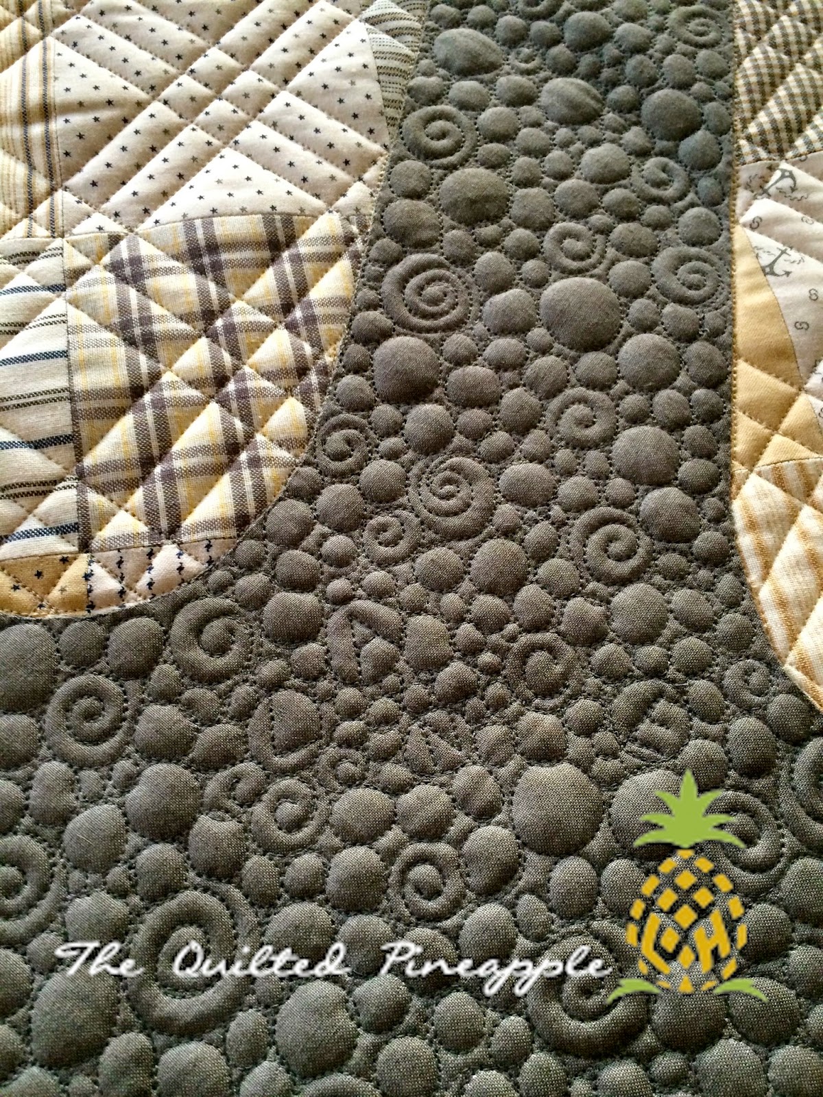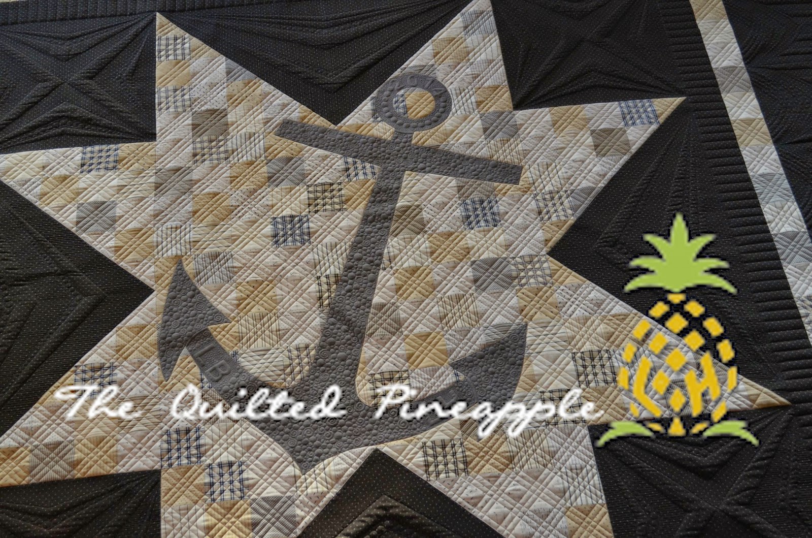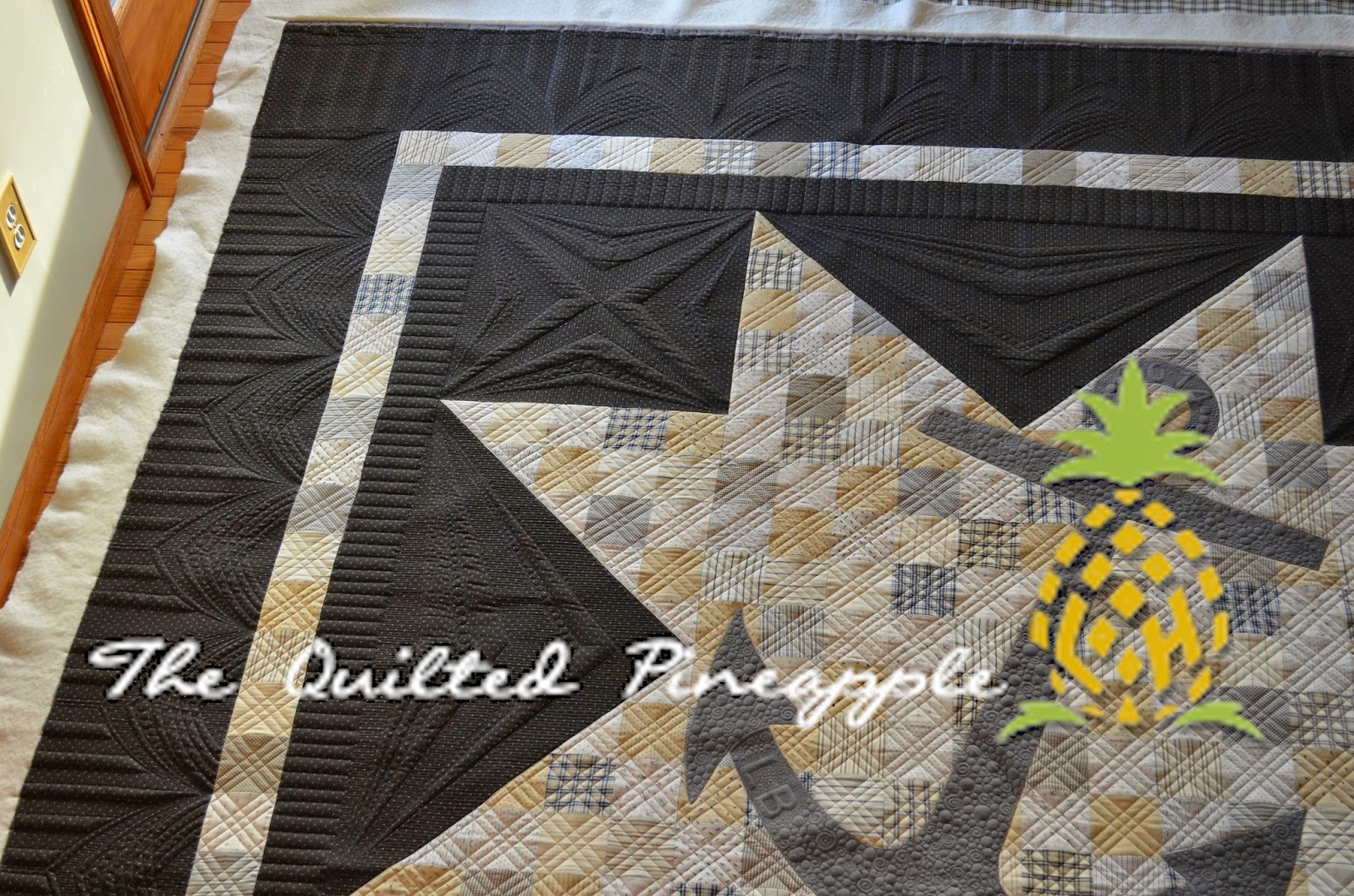 I had a little surprise for Lisa, something extra special for her. Once you see it, it’s easy to see.  I quilted “Lance” into the center of the anchor.