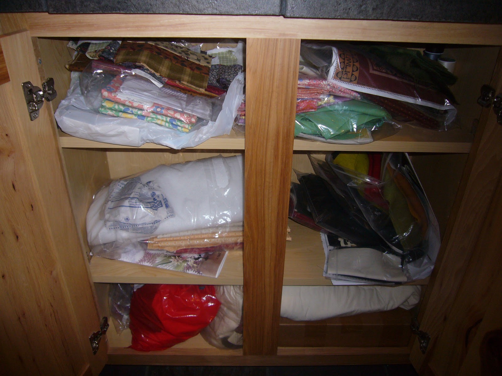 Next cabinet over holds designated fabric for projects I have yet to start.  A few are wool projects…