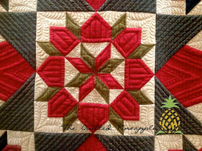 All threads are Superior So Fine.  Batting is Dream Wool.  The design was bold in nature with awesome space for quilting to show.  Wool was the perfect complement.  The wool gives the quilting amazing texture and dimension.