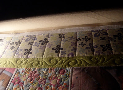 I quilted piano keys in the outer border and a pretty swirl feather in the sashing. I’m really loving that design!