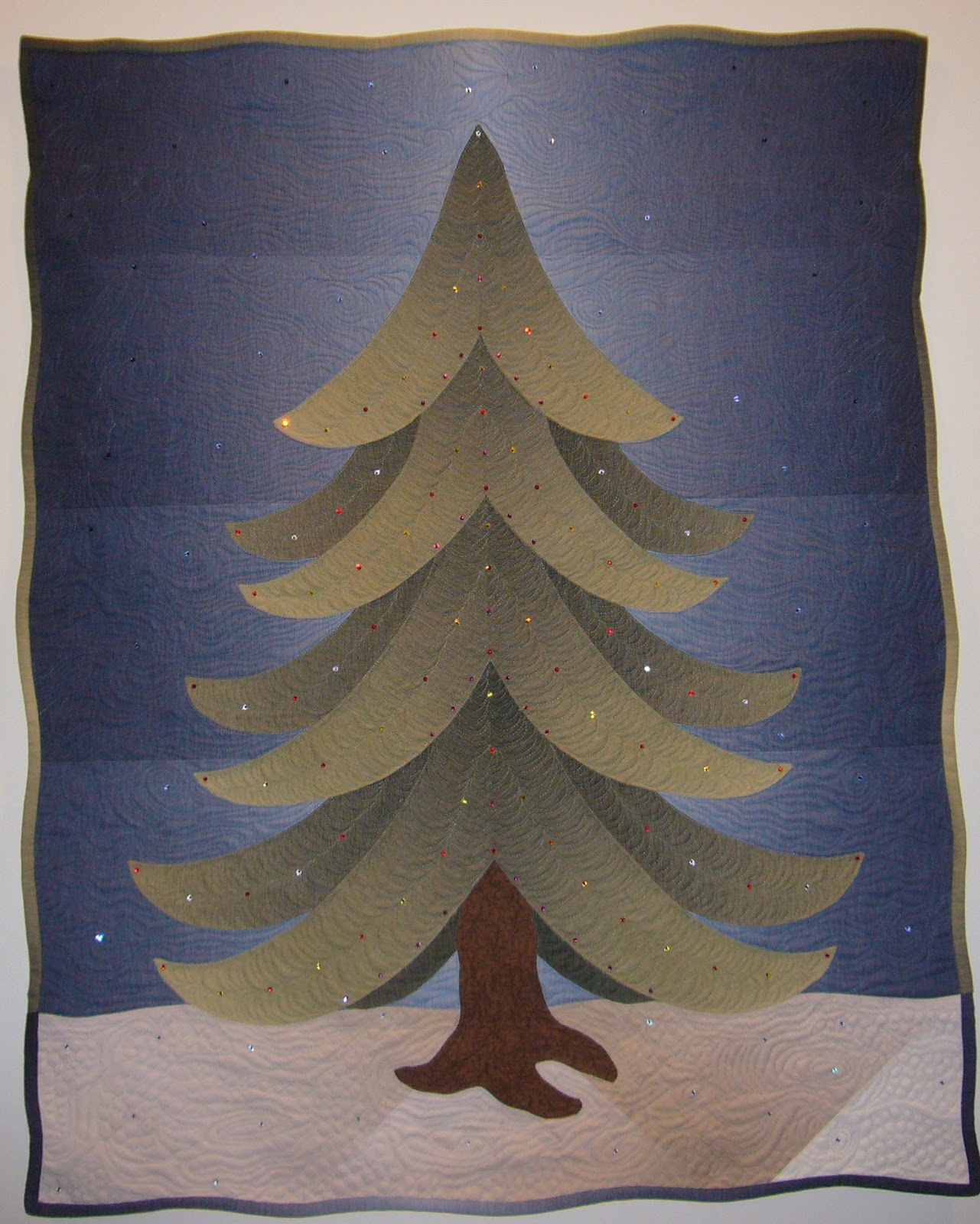 I am sorry that you cannot see the Swarovski Crystals very well in the pictures.  I love my Alpine Wonder!  I leave it up for about 6 months out of the year!  I had a blast doing all the free-motion quilting!  I just love how the quilting gave a lot of dimension to this quilt!