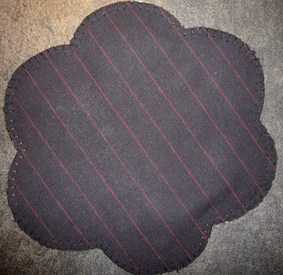 I had a woolwind, I mean whirlwind weekend! I worked my makeup artist job this weekend. I worked all day Friday at a location, came home and packed the family, including Sarge and headed to two hours to my in-laws’ house for the weekend. I had to work Saturday at a store near their house. Saturday night we all attended a birthday party for one of my husband’s best childhood friend’s 40th. I did manage to find time to make the snowman mat! Fortunately, the two hour ride home gave me time to stitch it up. I love how the back is finished off with a piece of Primitive Gatherings line of homespun fabric. It hides all the ugly stitches from the back and gives a finished look to the project.